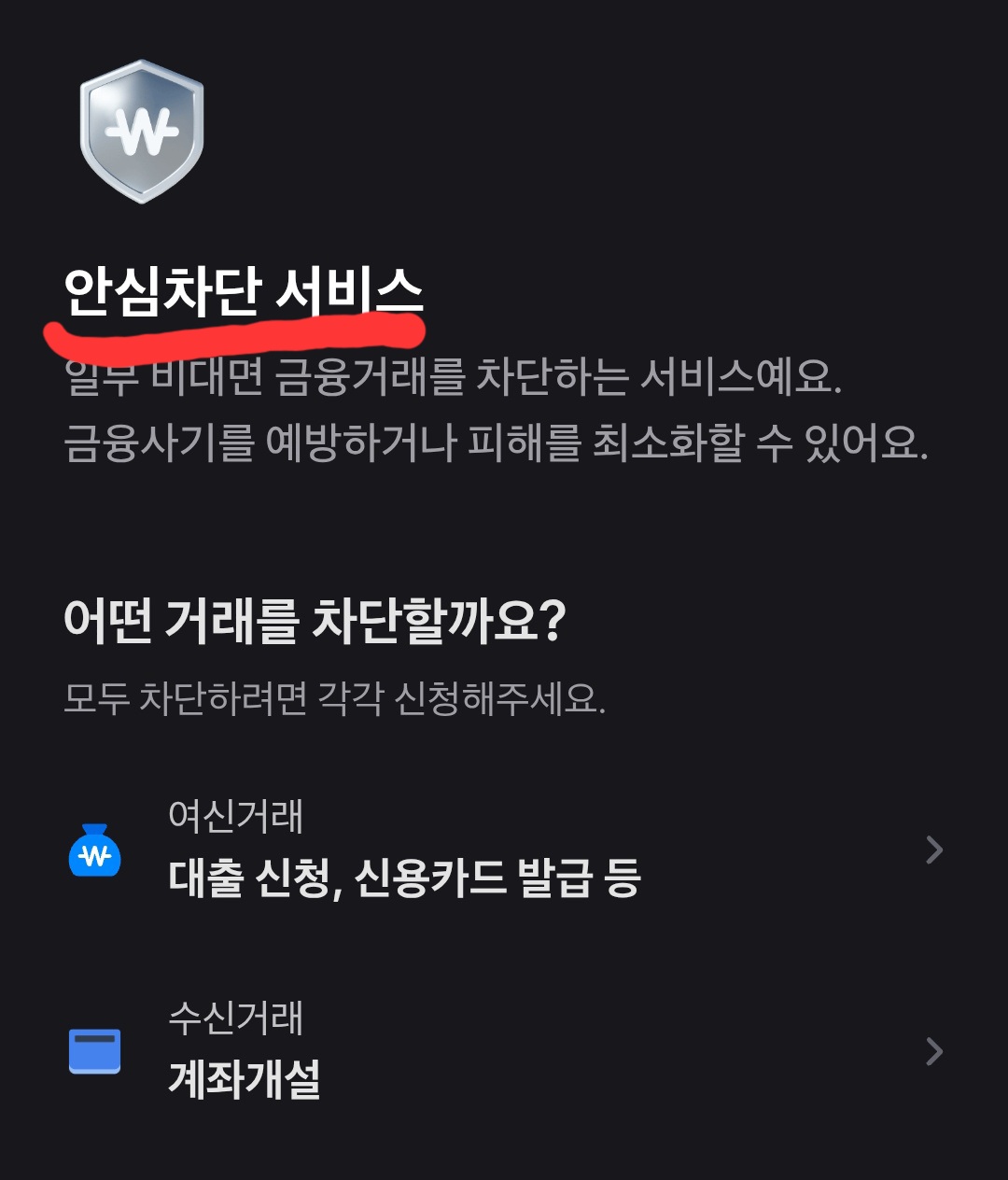 최근 비대면 계좌개설 안심차단 서비스가 추가 되었다고 합니다.