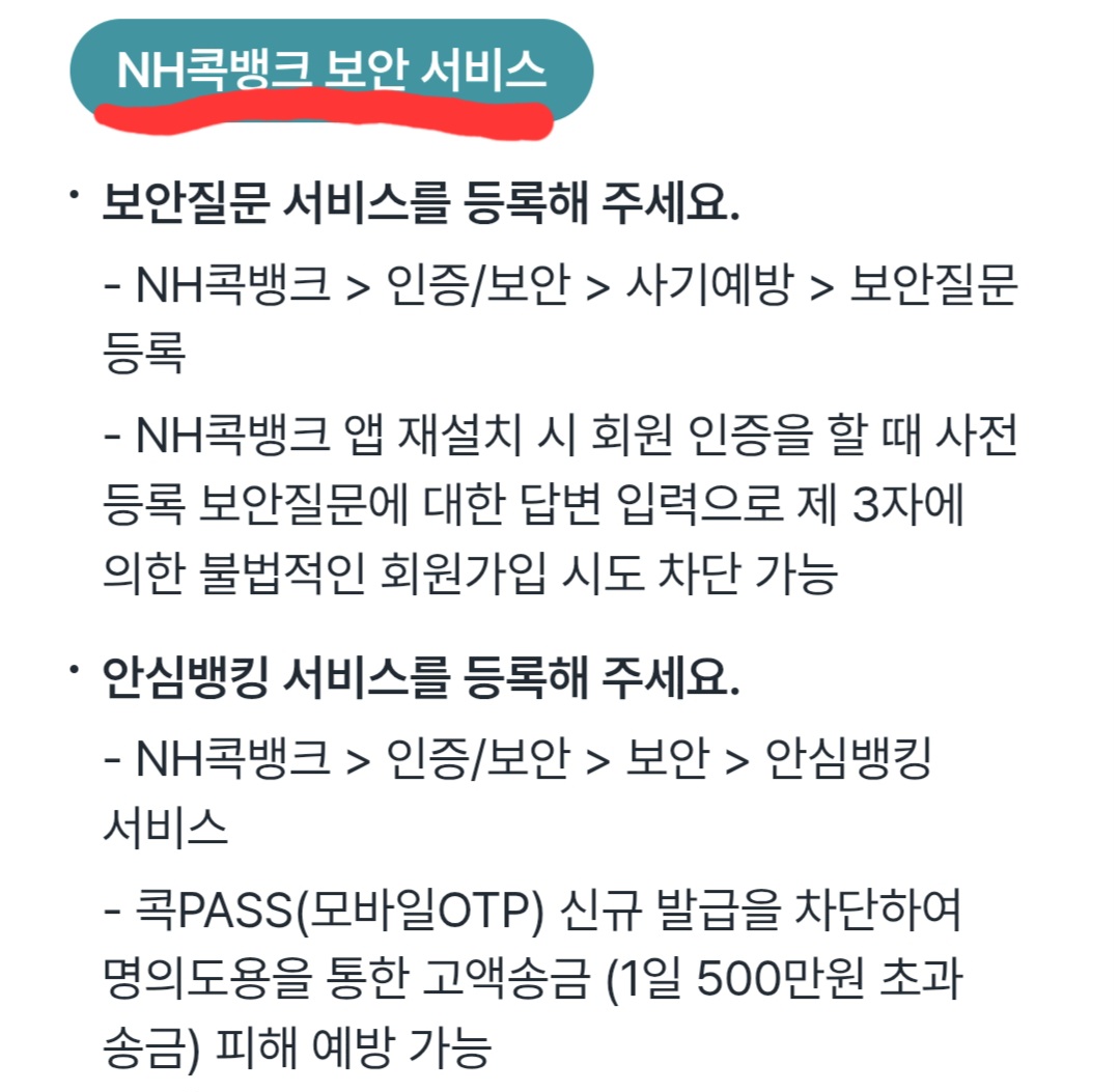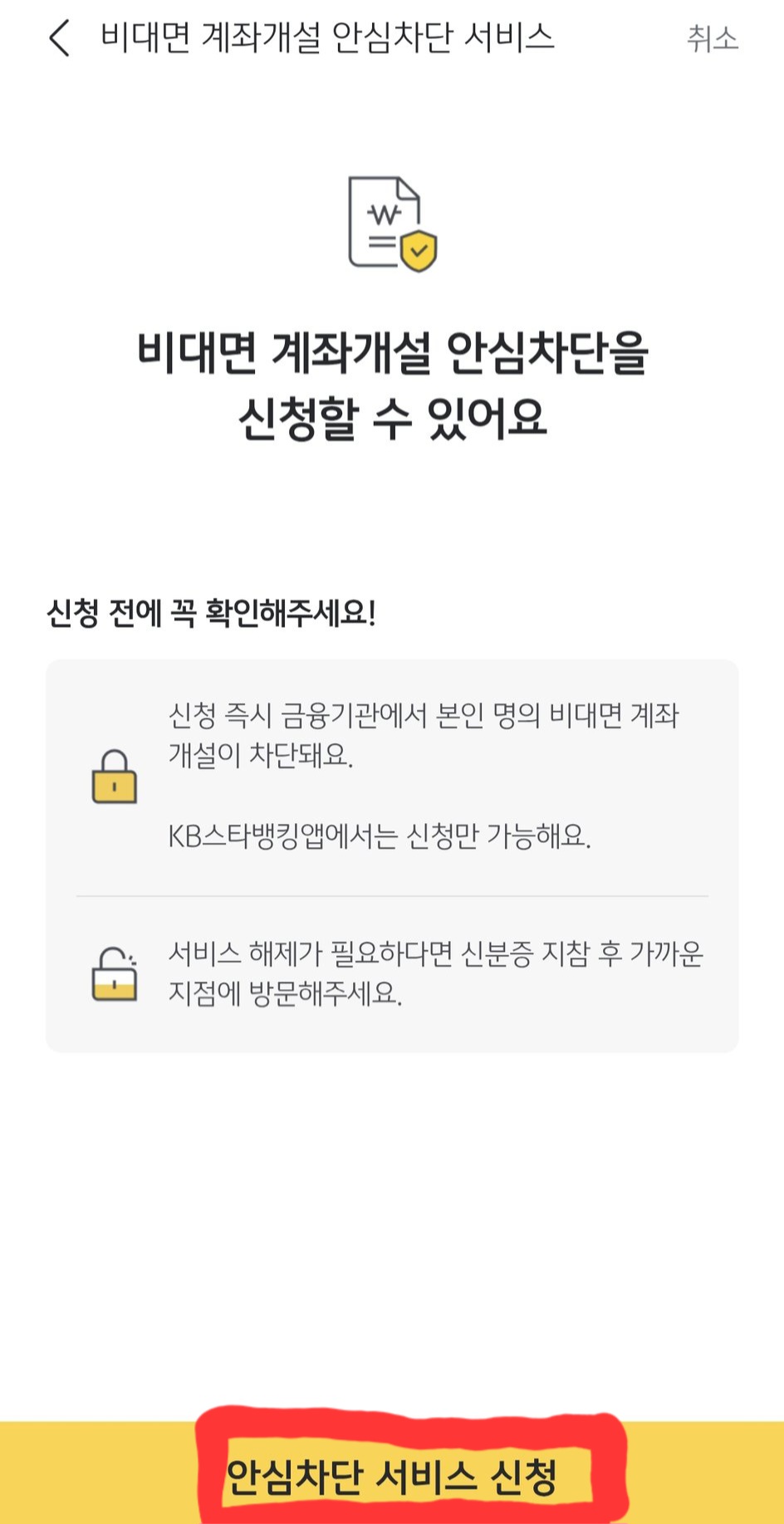 비대면으로 새 계좌를 만들 생각이 없으시면 비대면 계좌 개셜 안심차단 서비스도 같이 해두시면 좋아요.