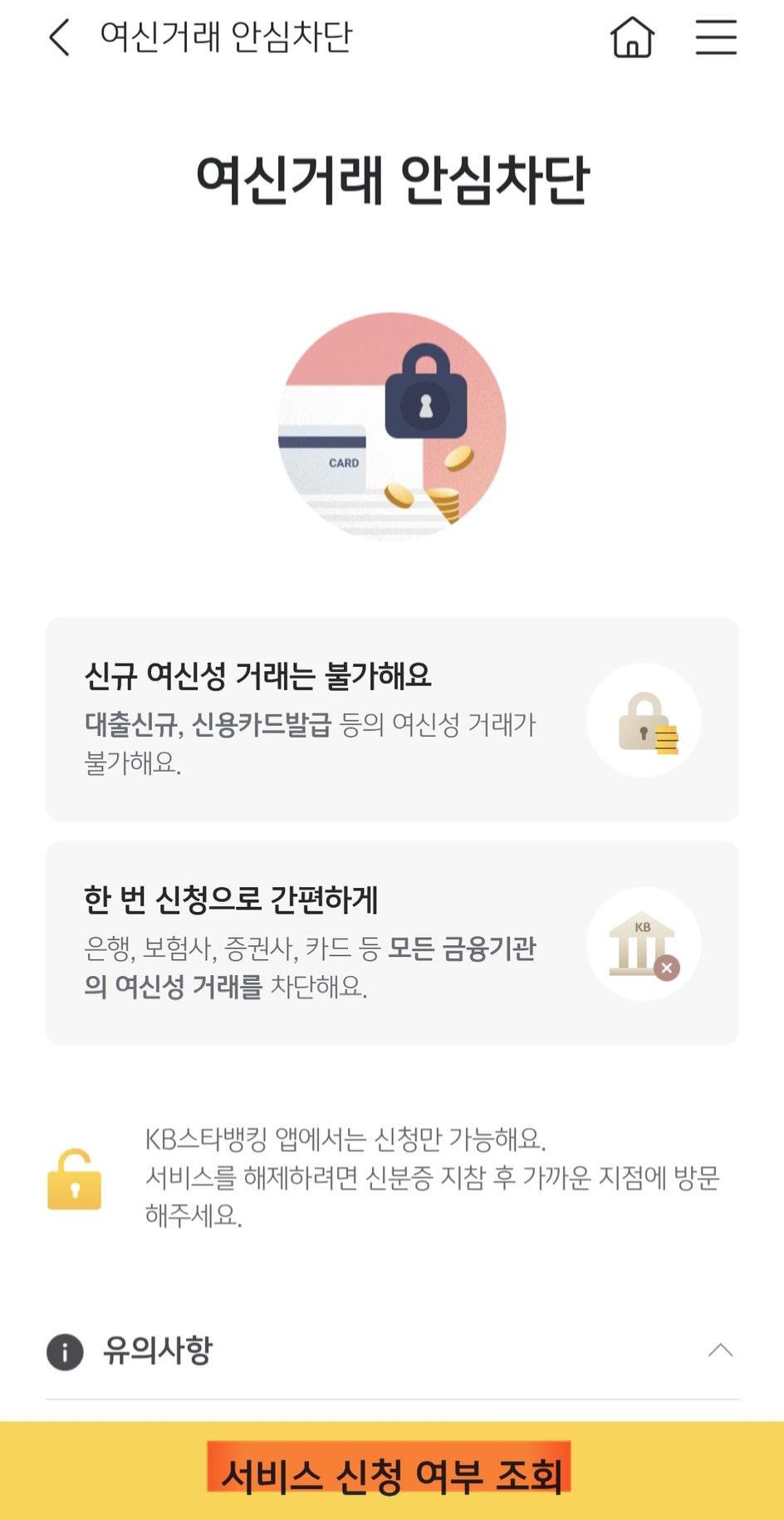 여신거래안심차단 서비스 신청 해제 비대면 계좌개설 안심 차단 신청 해제 토스 국민은행